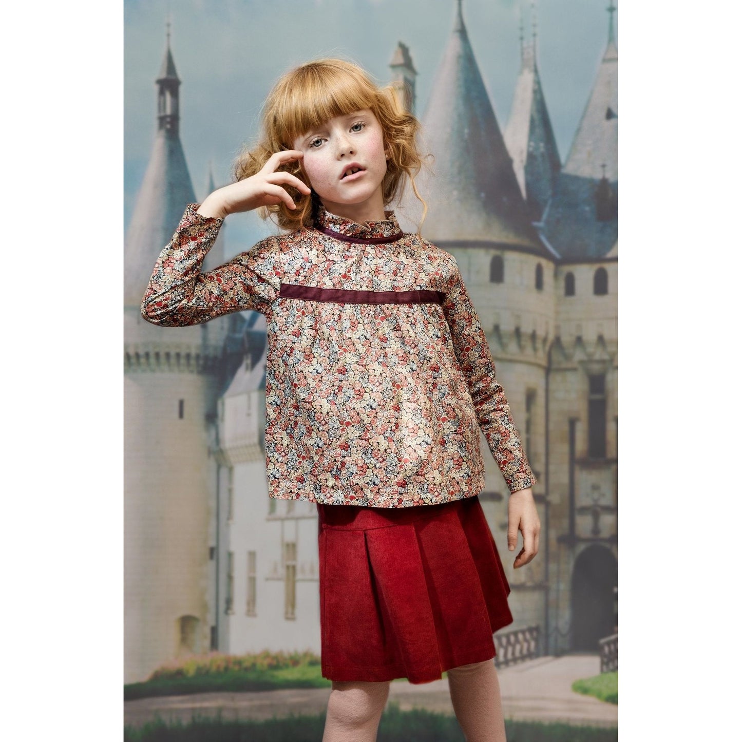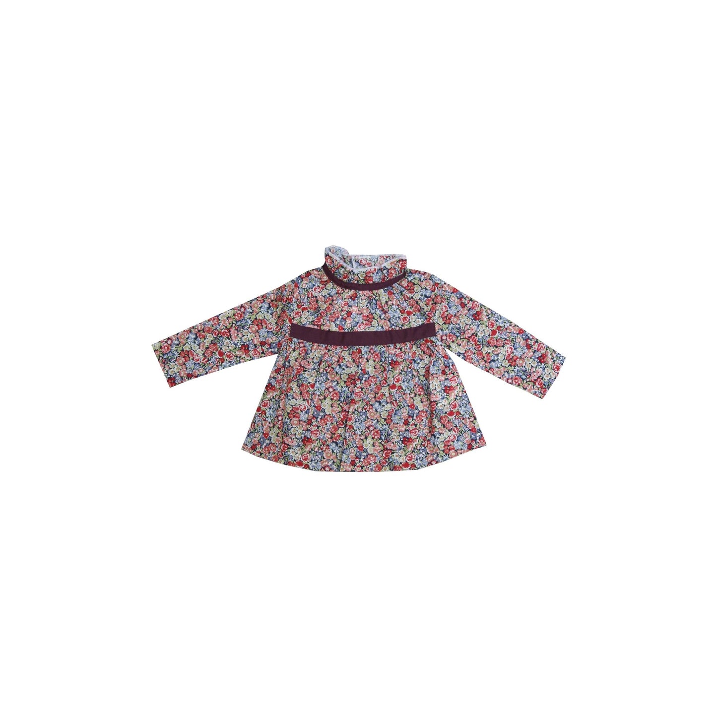 Liberty of London top with ruffled collar, French ribbon detail and back buttons.