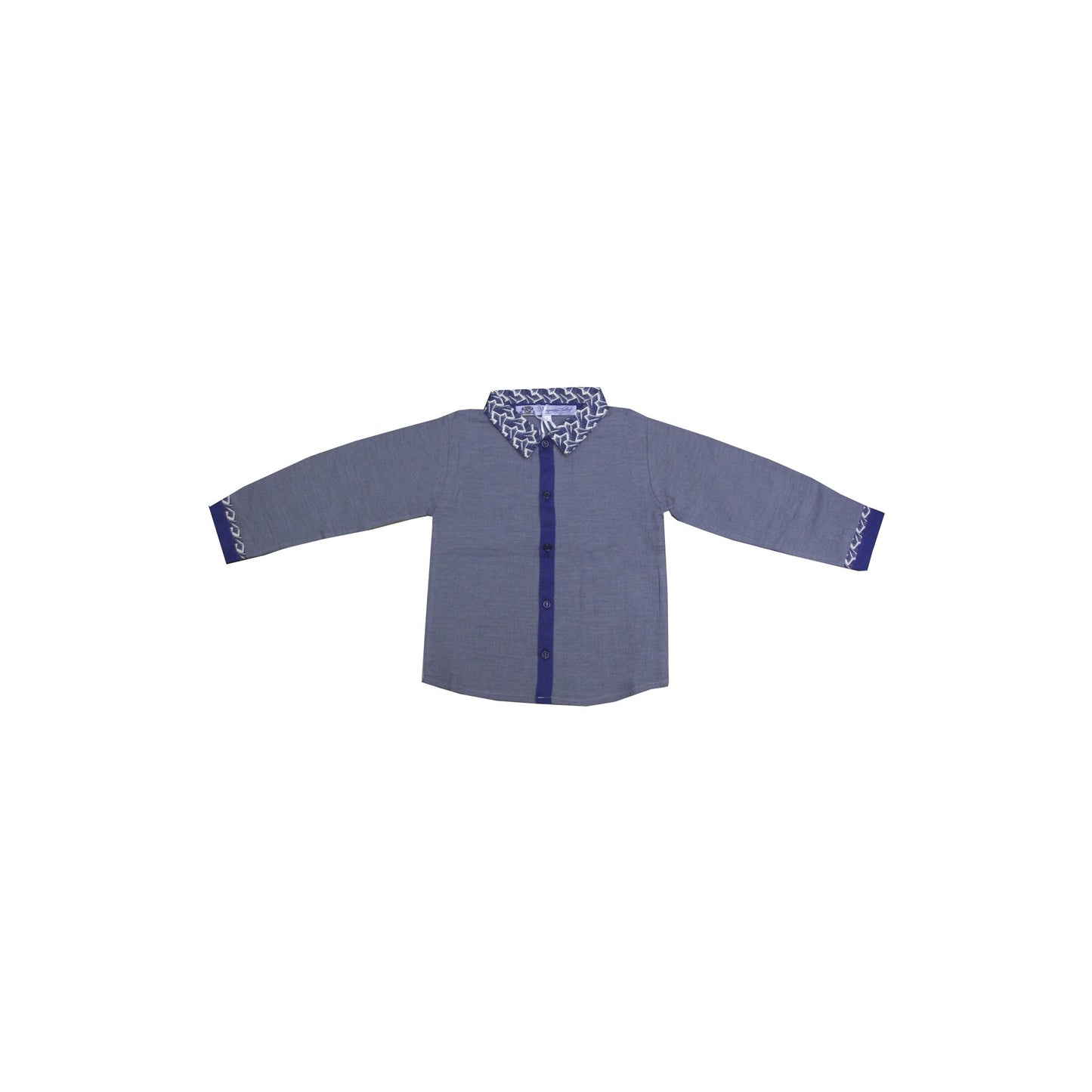 Chemise à manches longues pour garçons en coton mélangé brossé, col liberty London, boutons et ruban français.