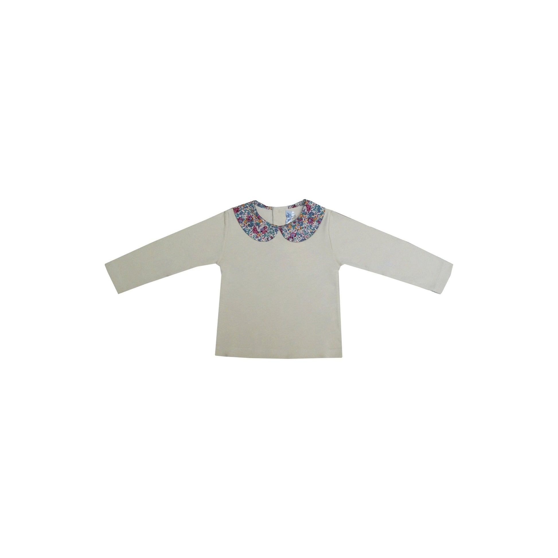 Long sleeve cotton t-shirt with col claudine in Liberty of London Claire Aude and back buttons.