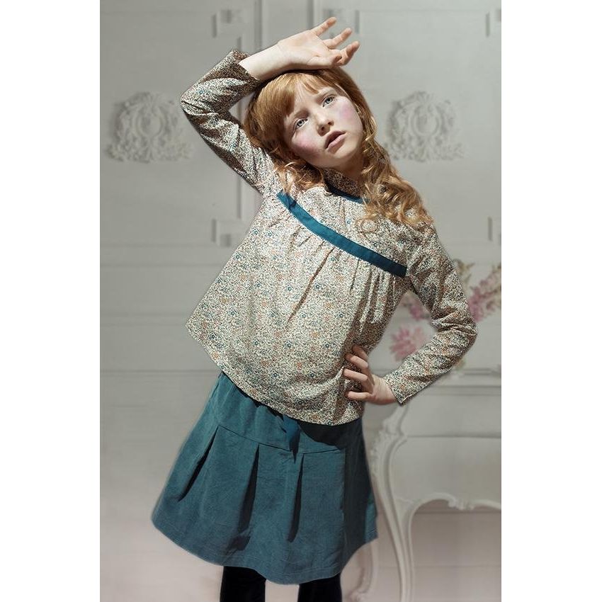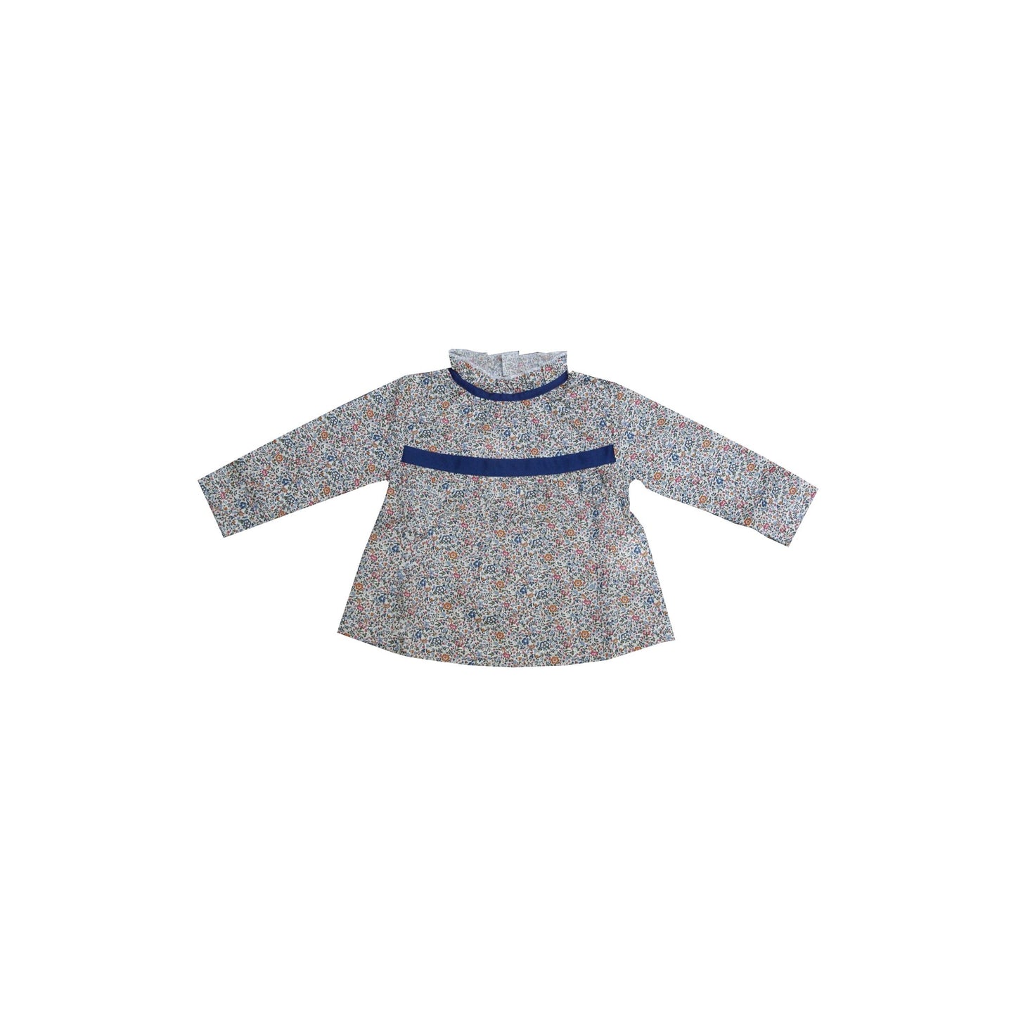 Liberty of London top with ruffled collar, French ribbon detail and back buttons.