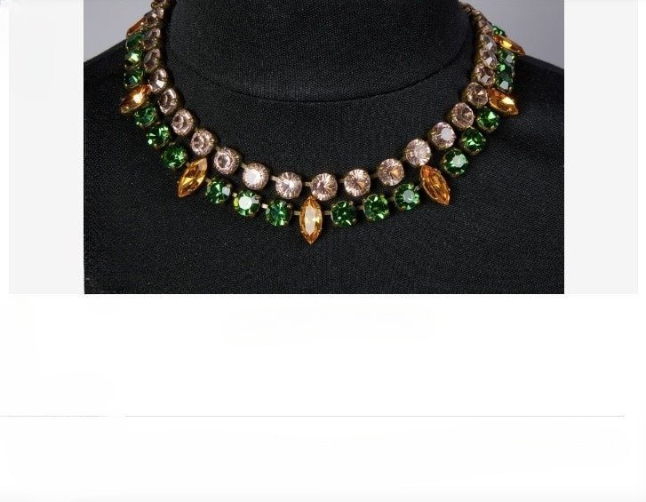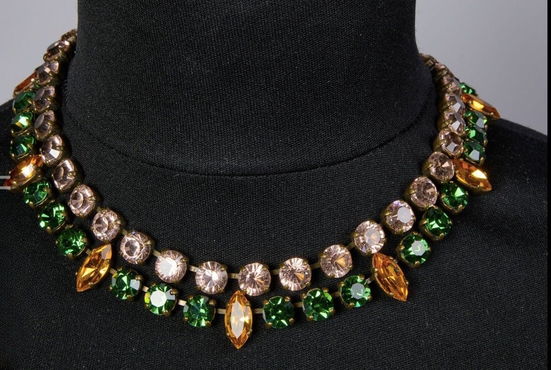 Jean Louis Blin Rare collier ras de cou en métal patiné avec strass en verre fumé
