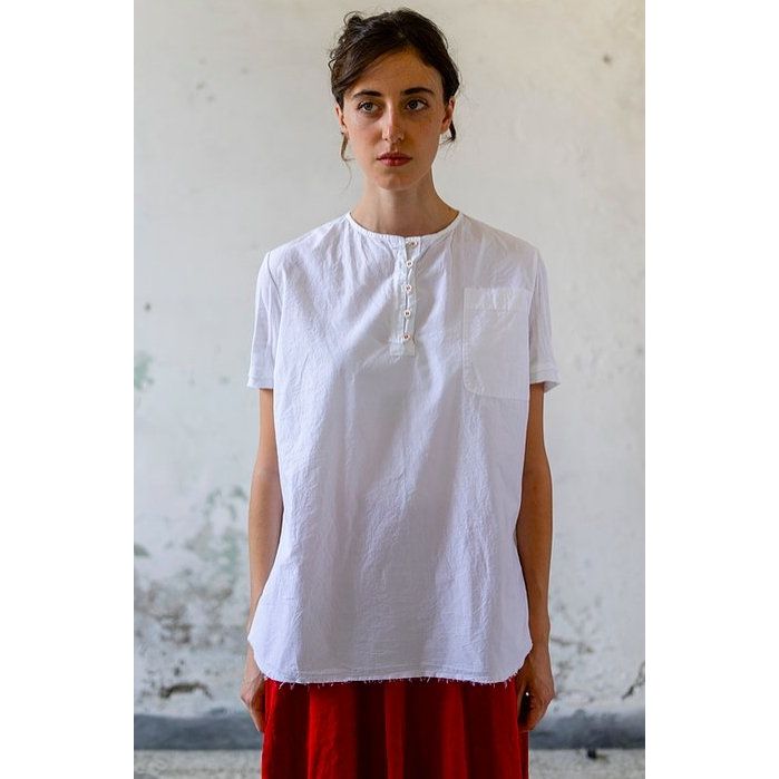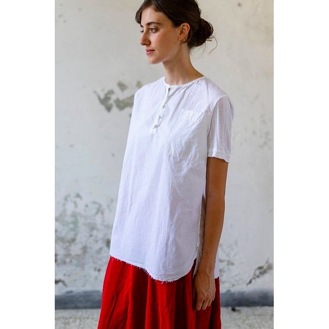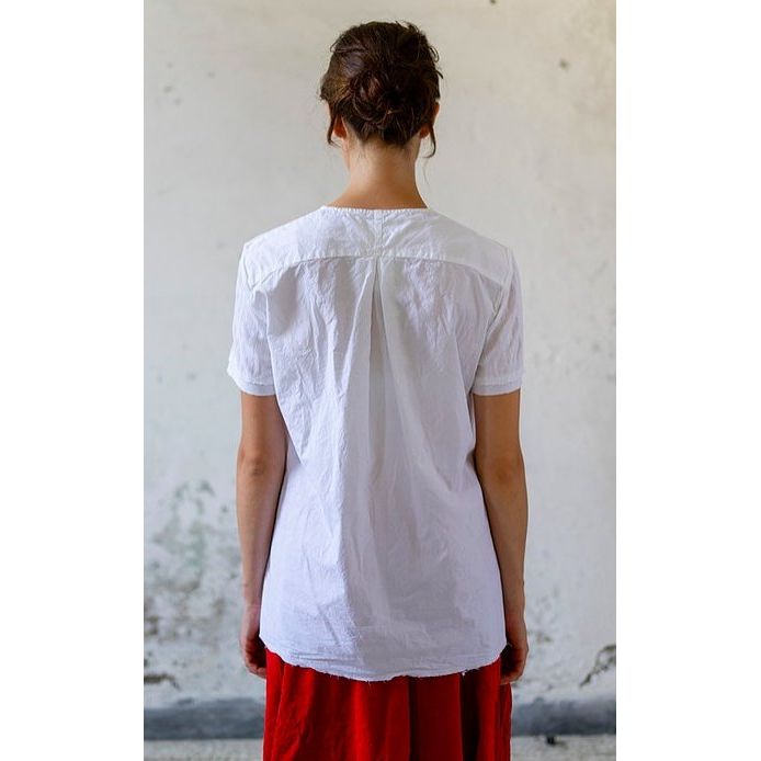 100% coton Percale Blanc Top Hannoh avec Manches Courtes en Jersey